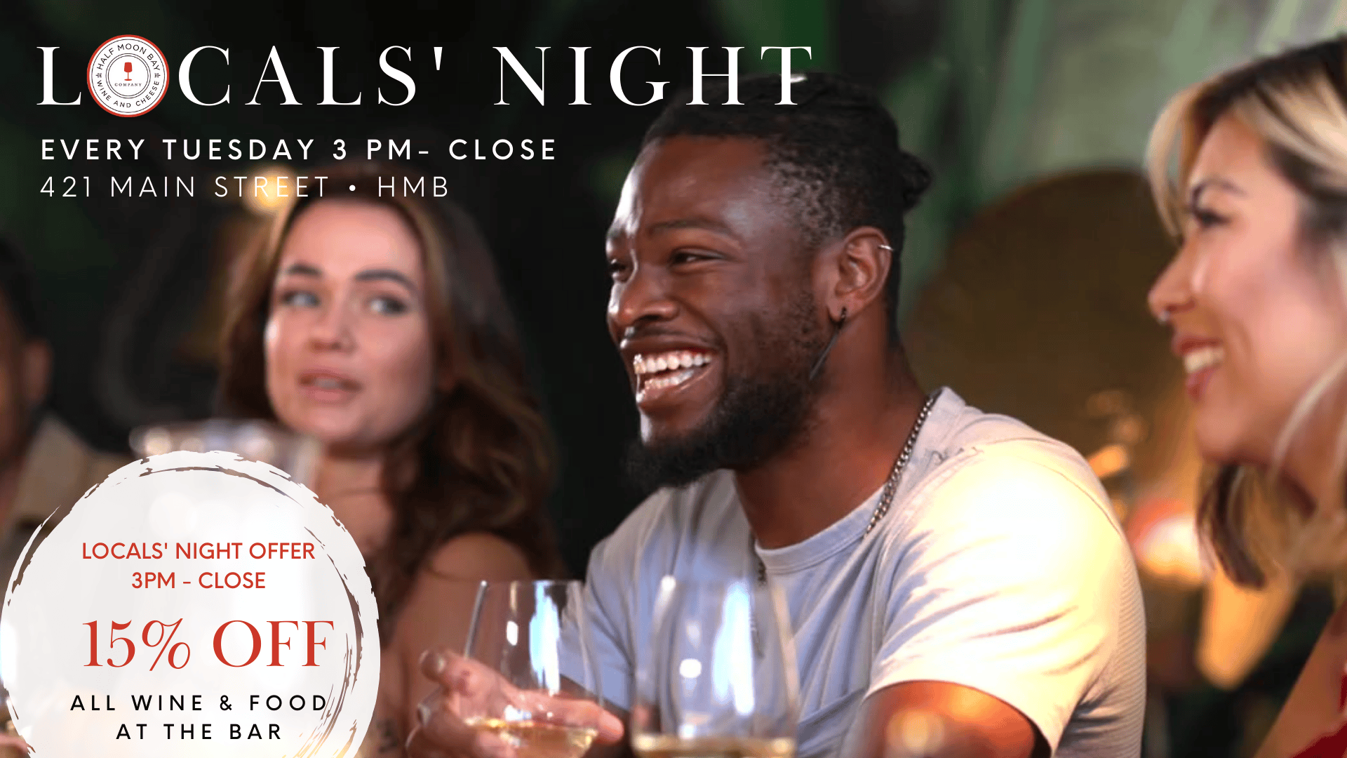 Enjoy 15% off all wine and food at the bar from 3 - 7 pm/closing time.