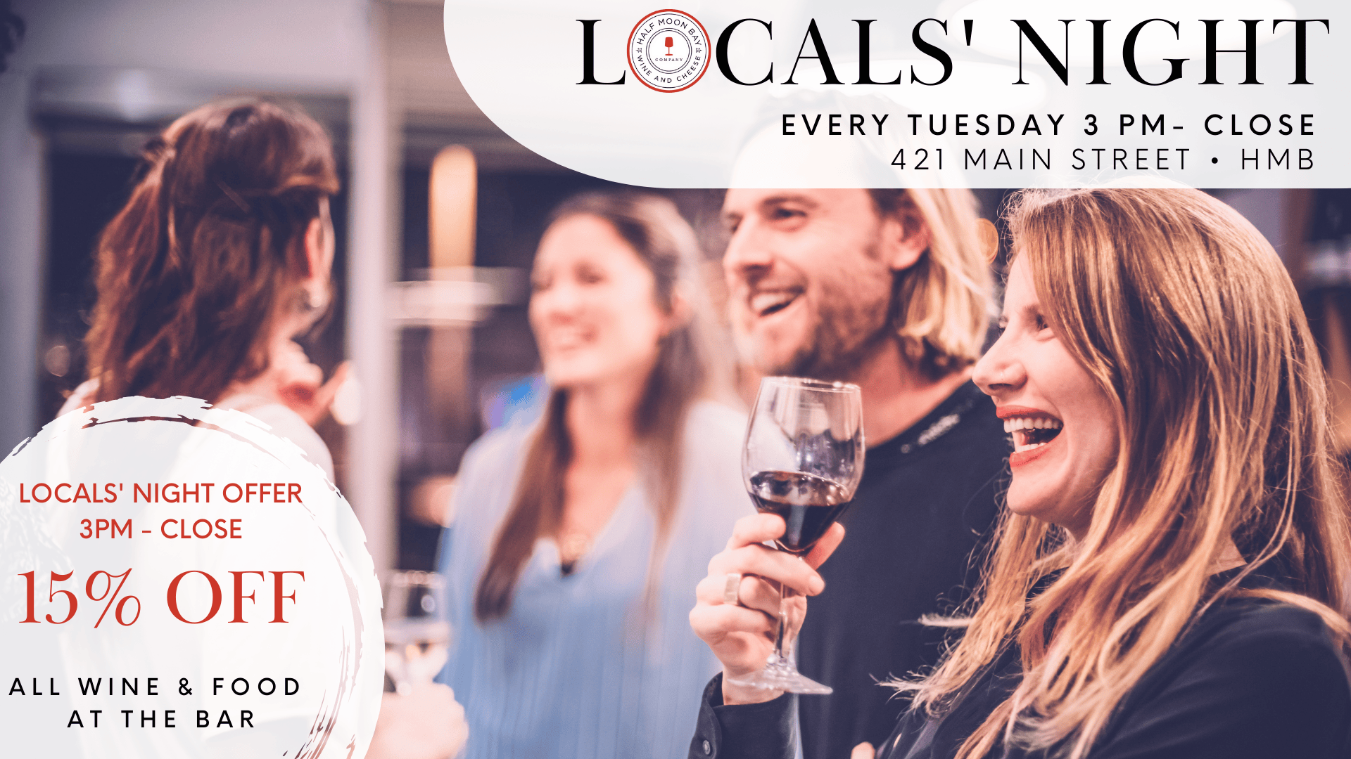 Enjoy 15% off all wine and food at the bar from 3 - 7 pm/closing time.