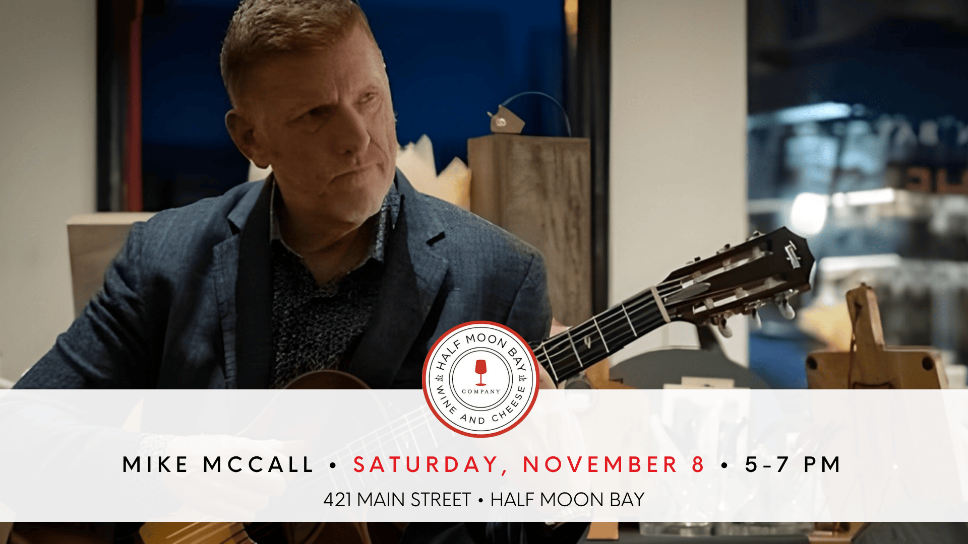 Experience the soulful sounds of Spanish Guitar with Mike McCall on Saturday, November 8 from 5–7 pm at the wine bar.