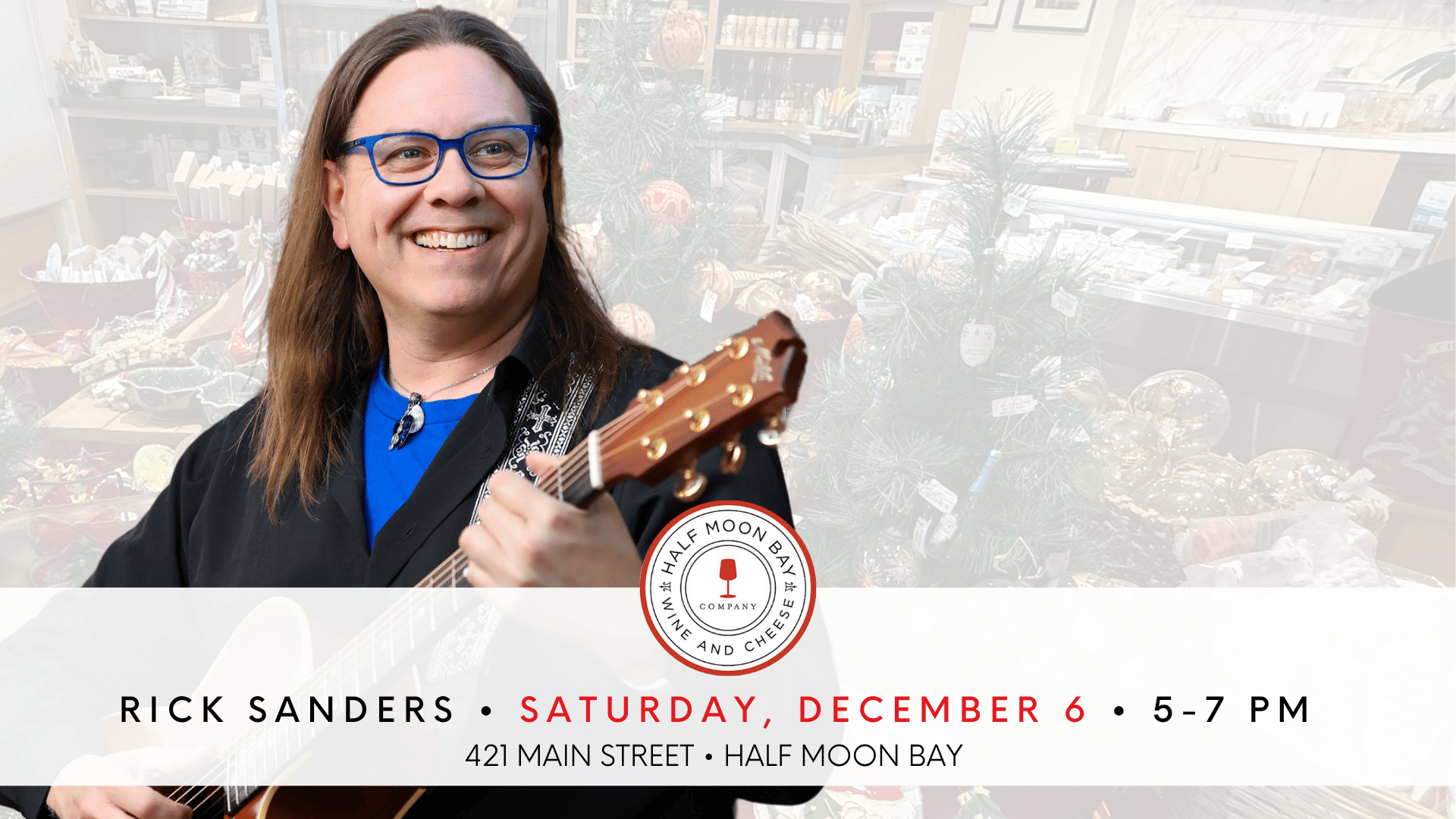 Mark your calendar for Saturday, December 6 when the talented Rick Sanders takes the stage with mix of 70s–90s favorites — all performed with his amazing live-looping magic.